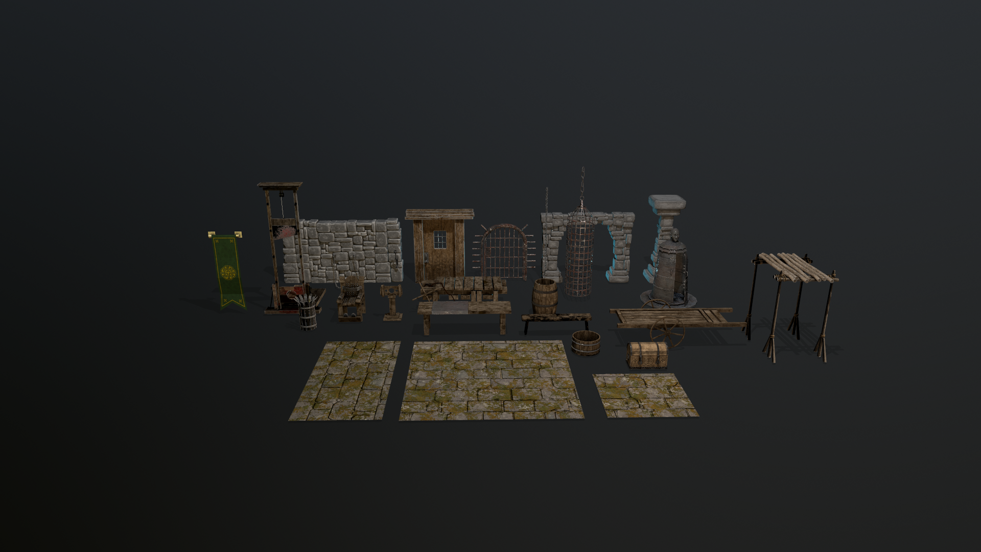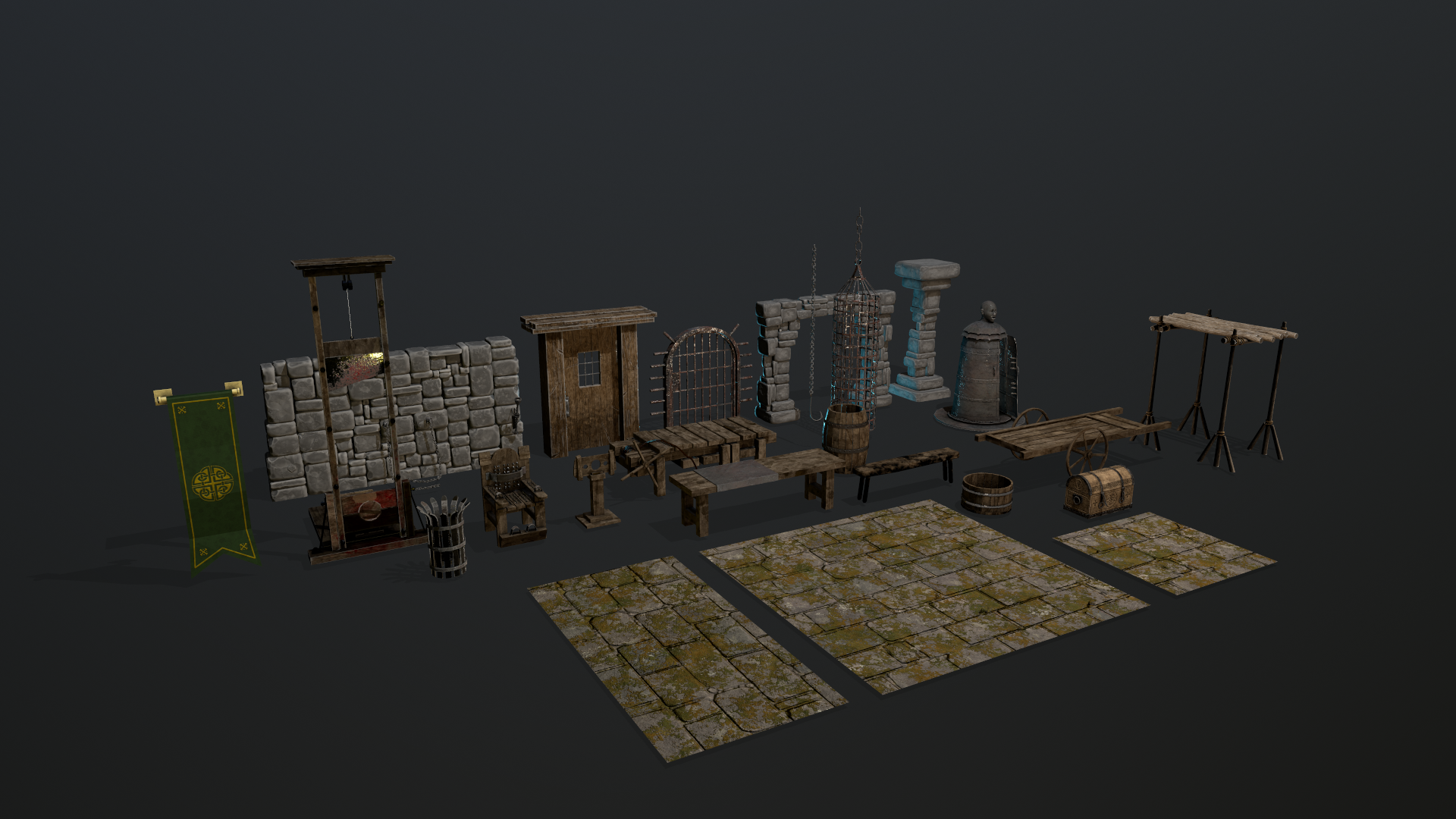 Pack Dungeon Game ready assets para implementar en tu juego. Un manojo de piezas de bajo poligonaje y texturas a 1 y 2 k. Puedes verlo implementado en este video: