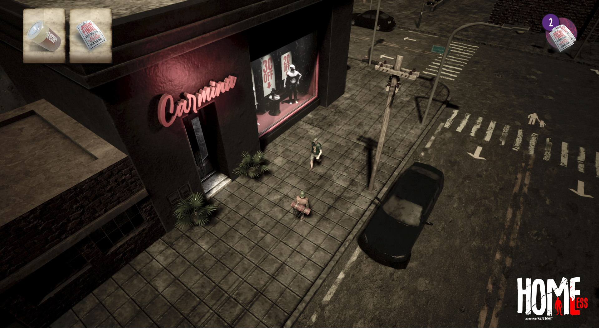 Homeless es una experiencia walkthrough donde encarnarás a un vagabundo en su búsqueda para sobrevivir. Un juego sencillo y despreocupado en el cual caminarás por diferentes escenarios rebuscando en los desperdicios y conociendo otras personas que están en tu situación.